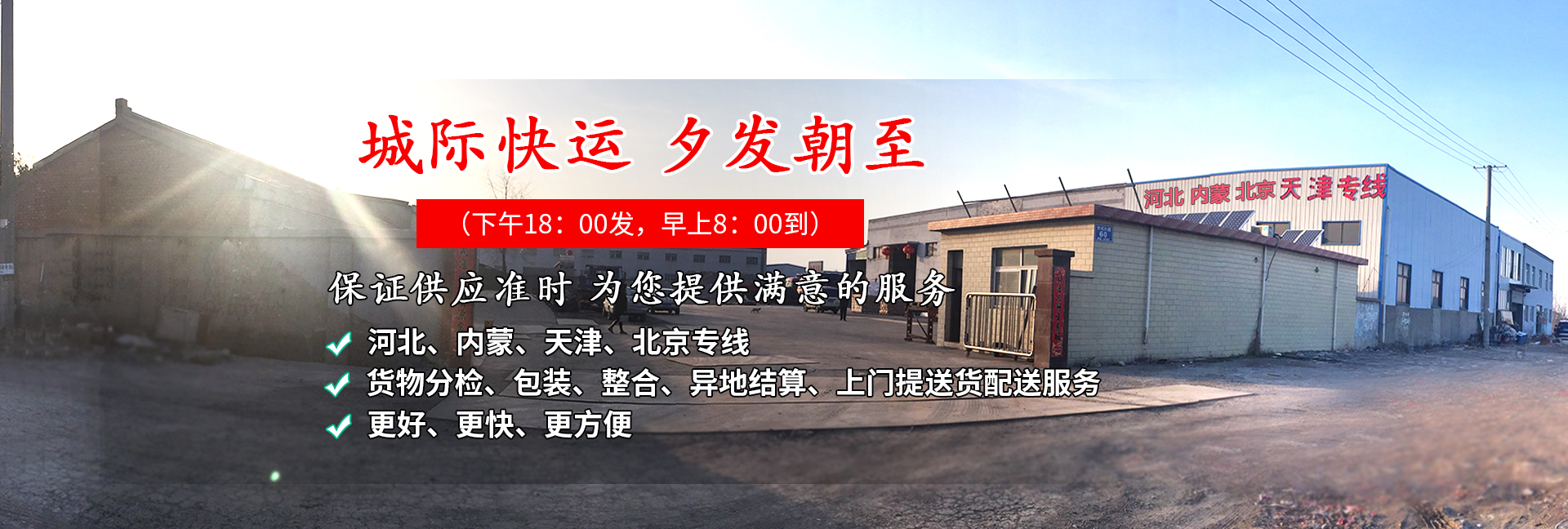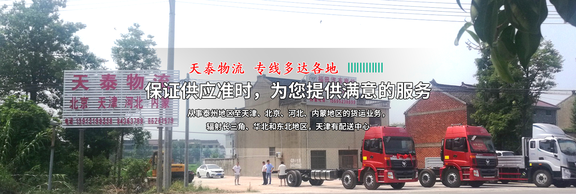 公司從事泰州地區至天津、北京、河北、內蒙地區的貨運業務,輻射長三角、華北和東北地區,天津有配送中心。